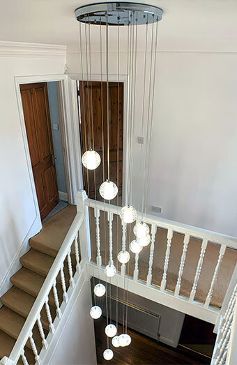Professional installation of all lighting types including pendants, downlights, oyster lights, and chandeliers for homes and businesses.